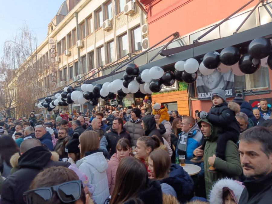 Pevale su se Partizanove navijačke pesme, palile baklje i dimbe bombe, a vrhunac proslave bio je kada se sa zgrade, kroz prozor, spustio Deda Mraz. Očekivano, ne u tradicionalnoj crveno-beloj nošnji, već u crno-beloj odeći. Bila je tu i crno-bela jelka, crno-beli baloni, ali i po koja zastava bratskog kluba PAOK.