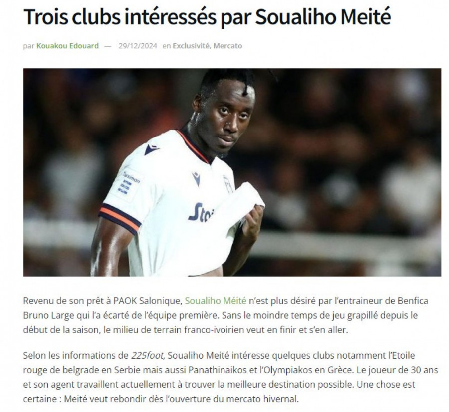 Kako bi izabranici trenera Vladana Milojevića bili što uigraniji za evropske izazove, rukovodstvo crveno-belih je već krenulo u potragu za pojačanjima, a jedan od imena koji figurira kao potencijalna akvizicija, jeste Sauli Meite, francuski fudbaler koji je je ugovorom vezan za lisabonsku Benfiku.