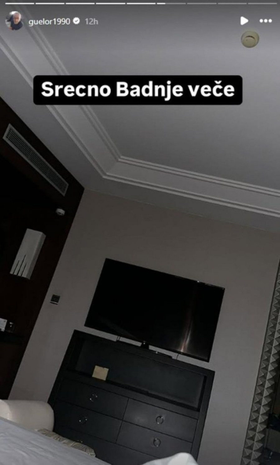 Fudbaler Crvene zvezde, Gejlor Kanga, obradovao je pravoslavne vernike čestitkom povodom Badnjeg dana na krajnje neobičan način. Na svom Instagram profilu, Kanga je objavio fotografiju televizora u hotelskoj sobi koja je bila u mraku, uz jednostavan, ali srdačan tekst na srpskom jeziku "Srećno Badnje veče". Foto: Printscreen