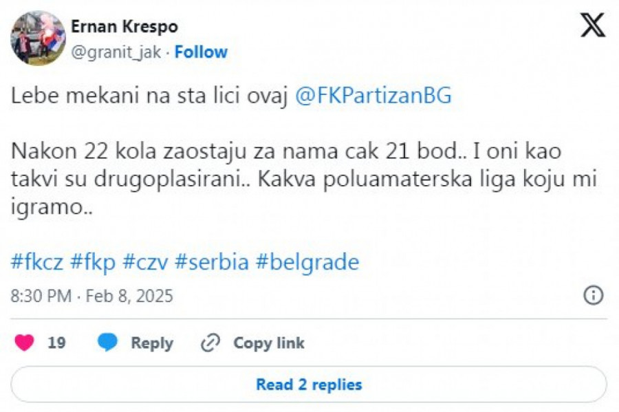Utakmica koja je teško bilo koga mogla da zadovolji odigrana je na novosadskom "Karađorđu" gde su se sastale ekipe Vojvodine i Partizana, a razočaravajućih 0:0 po ko zna koji put u aktuelnoj sezoni izazvalo je burne reakcija svih onih kojima su crno-bele boje na srcu.