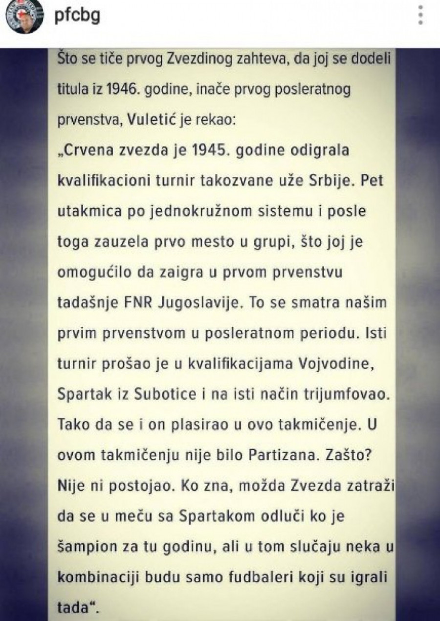 Potpredsednik Fudbalskog kluba Partizana Vladimir Vuletić oglasio se na društvenim mrežama, pošto je Crvenoj zvezdi uručen šampionski pehar za osvojenu titulu u ovoj sezoni.