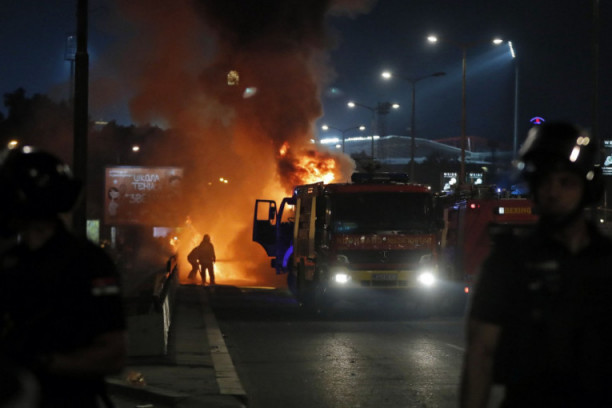 Autobus koji je prevozio fudbalere Crvene zvezde od stadiona "Rajko Mitić" do Hrama Svetog Save u Beogradu zapalio se kod Autokomande.