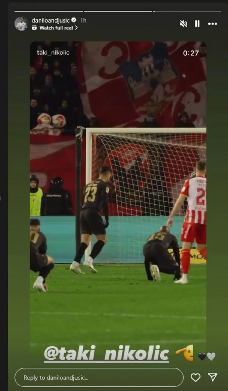 Nakon večitog derbija, bivši košarkaš Partizana, Danilo Anđušić, javio se na svom Instagram storiju gde je podelio snimak penala Nemanje Nikolića. Njegova reakcija na ovaj neočekivani trenutak pokazuje koliko je utakmica bila zanimljiva čak i za bivše sportske veličine.