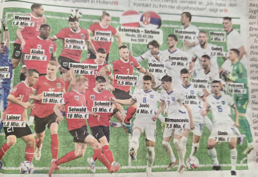 Fudbalska reprezentacija Srbije u Beču od 20.45 igra prvi meč protiv selekcije Austrije za ostanak u Ligi Nacija. "Orlovi" su u Beč stigli bez dosta standardnih igrača, tako da su domaćini favoriti u ovom susretu, a slično je rekao i naš selektor Dragan Stojković Piksi na jučerašnjoj pres konferenciji na kojoj je naglasio da bi bio zadovoljan i sa nerešenim rezulatom.