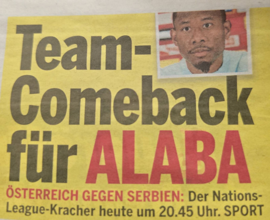 "Alabin povratak u reprezentaciju Austrije", stoji u naslovu bečkog lista OE24.