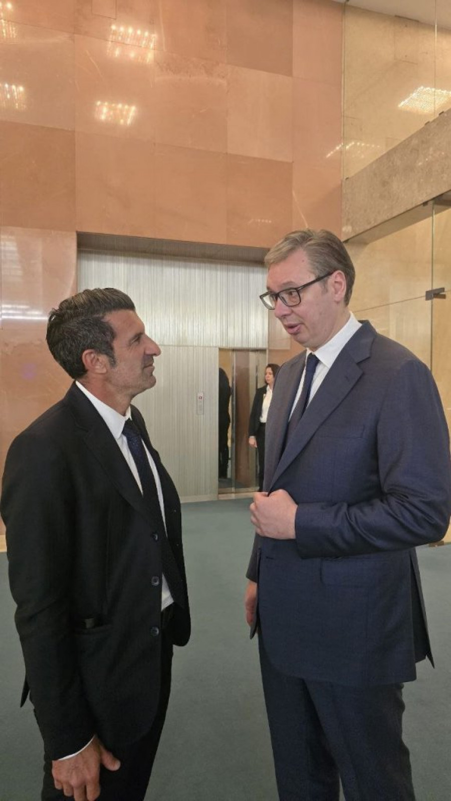 U razgovoru sa Vučićem, Figo je naglasio da se veoma lepo oseća u Srbiji i da ovde ima mnogo prijatelja. Kada je došlo do poređenja fudbalskih kvaliteta između Srbije i Portugala, Figo je odlučno odgovorio da smatra da je Portugal bolji.