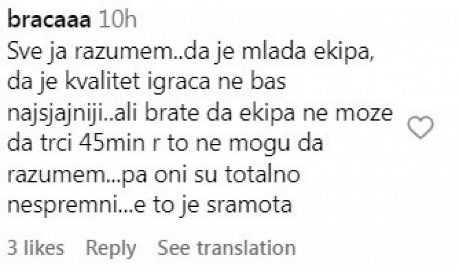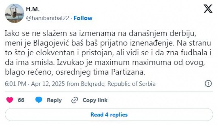 Komentari navijača bili su različiti, ali većina je bila kritična prema Blagojeviću. Strategu crno-belih posebno se zamera činjenica da je u samom finišu meča, na terenu imao čak devetoricu defanzivno orijentisanih fudbalera. Postavljalo se pitanje fizičke spreme igrača, a neki su čak sugerisali da je bolje da se utakmica i proda pre njenog početka, nego da se ovako ponižava klub. Ipak, bilo je i onih koji su stali u odbranu trenera, govoreći o njegovoj elokvenciji i sposobnosti da izvuče maksimum iz trenutnog tima, koji se može opisati kao osrednji.