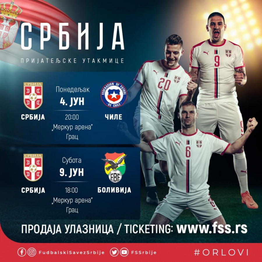 Ulaznica za prijateljski meč Srbije i Čilea, koji će biti odigran 4. juna u Gracu, ima još u slobodnoj prodaji.