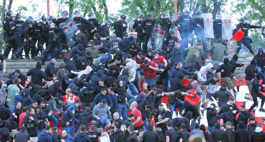 Međutim, na samom početku meča došlo je do nemira na tribini na kojoj se nalaze navijači Crvene zvezde.