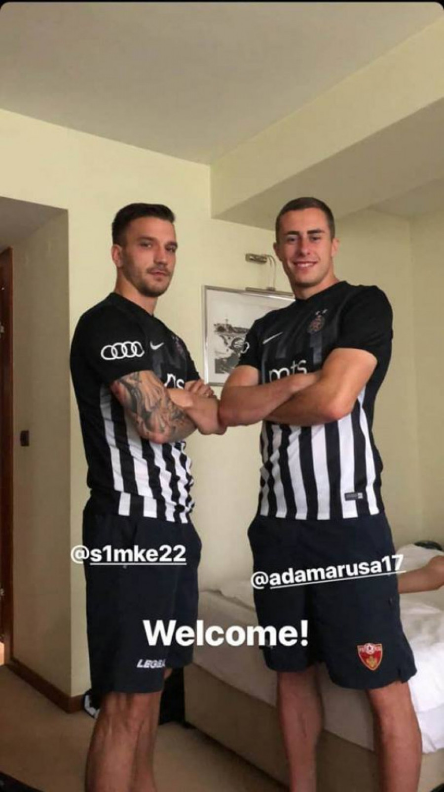 Foto: pictaram.life/fkpartizan_newsOn je svojim saigračima Marku Simiću i Adamu Marušiću doneo dresove osvajača Kupa Srbije, što su njih dvojica sa zadovoljstvom prihvatili i pozirali za društvene mreže u crno-beloj opremi.