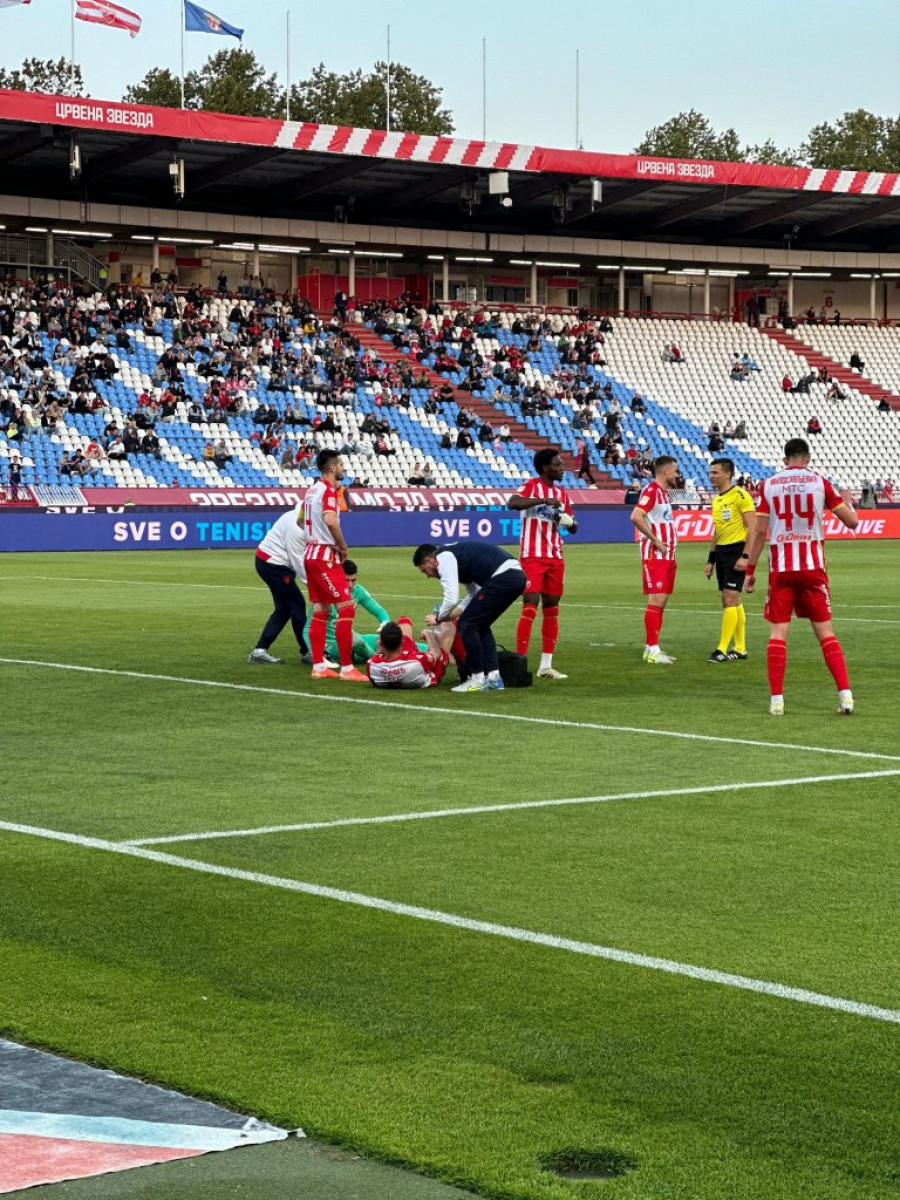 DRAMA NA UTAKMICI ZVEZDE! Sudarili se golman i fudbaler, ODMAH UTRČALA LEKARSKA EKIPA (FOTO GALERIJA)