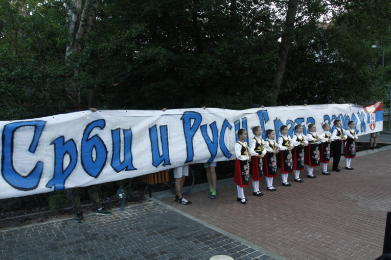 "Srbi i Rusi braća zauvek" - pisalo je na velikom transparentu koji je oduševio sve iz naše delegacije.