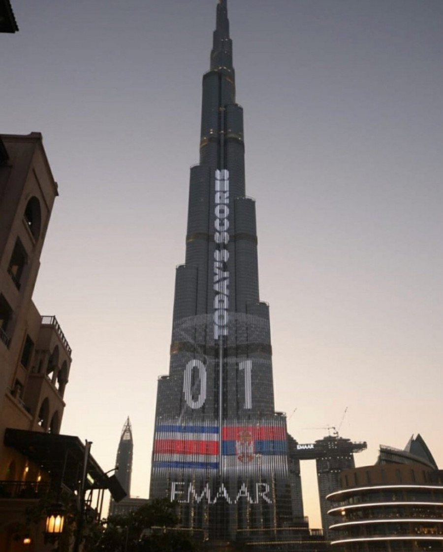 Na poznatom oblakoderu "Burdž Kalifi" u Dubaiju osvanula je čestitka fudbalskoj reprezentaciji Srbije za pobedu nad Kostarikom na SP u Rusiji.