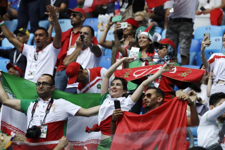 Navijači fudbalske reprezentacije Irana pravili su šou ispred hotela u kom su smešteni igrači Portugalije u Saransku, pred duel dve selekcije u grupi B.