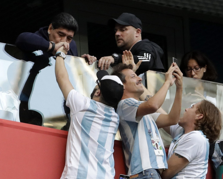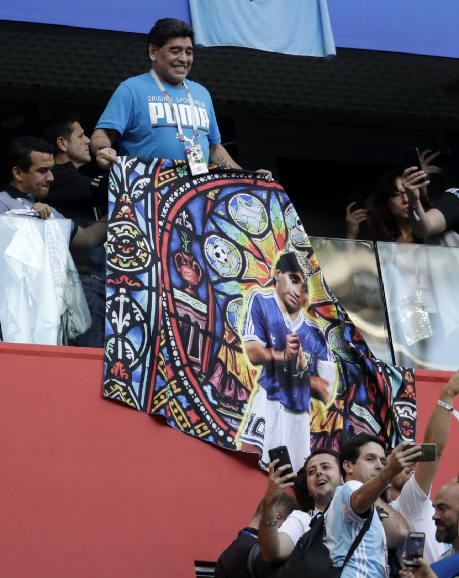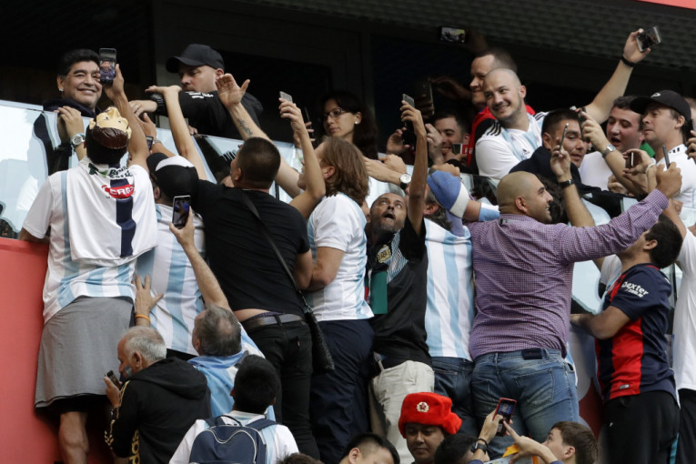 Legendarni fudbaler Dijego Armando Maradona ponovo je zauzeo mesto u loži, iako bi mogao da se nađe i među najvatrenijim navijačima na tribinama. Zna se da je Maradona u Argentini proglašen za Božanstvo a on je ispratio sve tri utakmice "gaučosa" u Rusiji. Po njegovim reakcijama i gestikulaciji spreman je da Leo Mesi stane rame uz rame sa njim, a za to, jednom od njaboljih fudbalera današnjice treba osvajanje "boginje".
