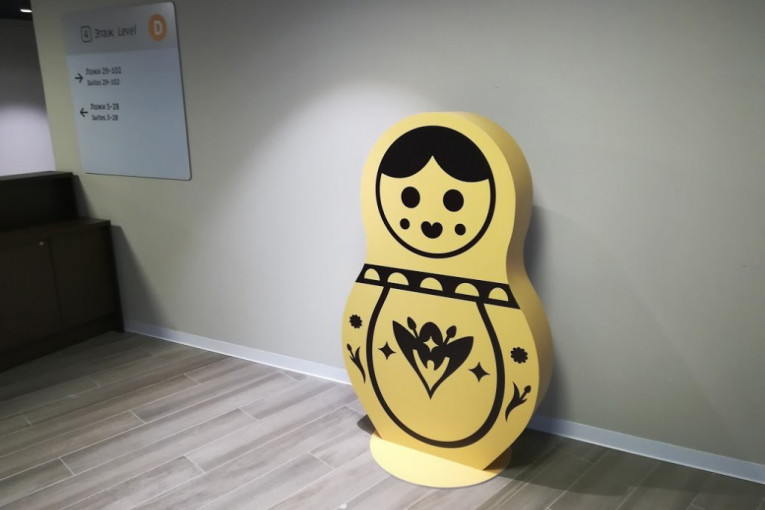 Čim sam izašao iz lifta - ogroman restoran, iz nekoliko delova, sa oko deset metara dugim šankom, švedskim stolom, a svuda okolo motivi Mundijala i Rusije, dominiraju babuške. Ne znam na koju stranu da krenem, ali odlučim se za desno. Hostese, konobari, čistačice koje sređuju za VIP gostima koji su samo pre nekoliko trenutaka napustili Lužnjiki mi se osmehuju, misle da sam neko od tih bitnih. A ja drhtim... Srce kuca kao u zeca! U glavi mi samo: snimiće me, uhapsiće me, možda je najbolje da me samo deportuju u Srbiju, zamoliću ih za to... Nema veze što večeras neću gledati Brazil - Srbija!