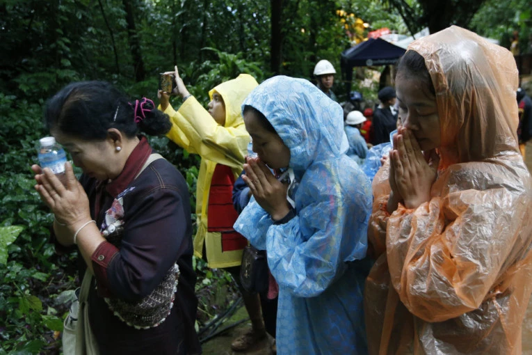 Foto: Tanjug/APJaka kiša otežavala je potragu za dvanaestero dece i njihovim fudbalskim trenerom koji su već četiri dana zarobljeni u poplavljenoj pećini na severu Tajlanda. Porodice nestalih momaka su otišle na mesto gde traje akcija spasavanja i ne gube nadu da će pronaći njihove najmilije.