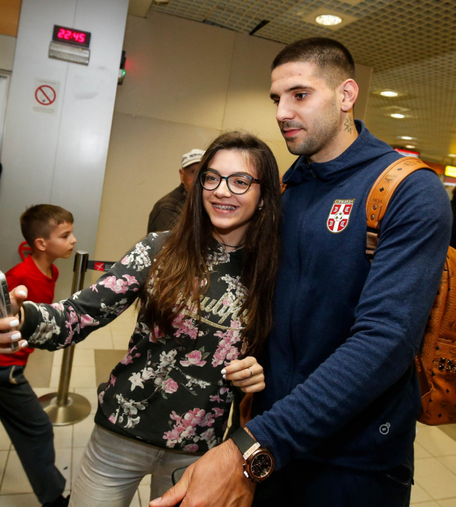 Sergej Milinković Savić je izašao sa kapuljačom na glavom i neprimetno bukvalno istrčao. Ostali su stali da se slikaju sa decom i navijačima.