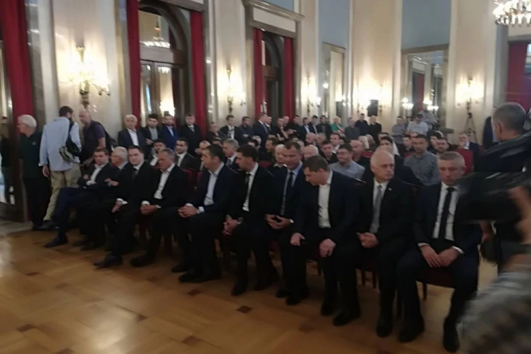 Foto: Republika.rsPrvi je stigao Nemanja Matić, kom su se pridružili Mladen Krstajić, Aleksandar Kolarov i Vladimir Stojković. Prisutan je bio i prvi čovek srpskog fudbala Slaviša Kokeza, kao i predsednik Crvene zvezde Setozar Toza Mijailović.