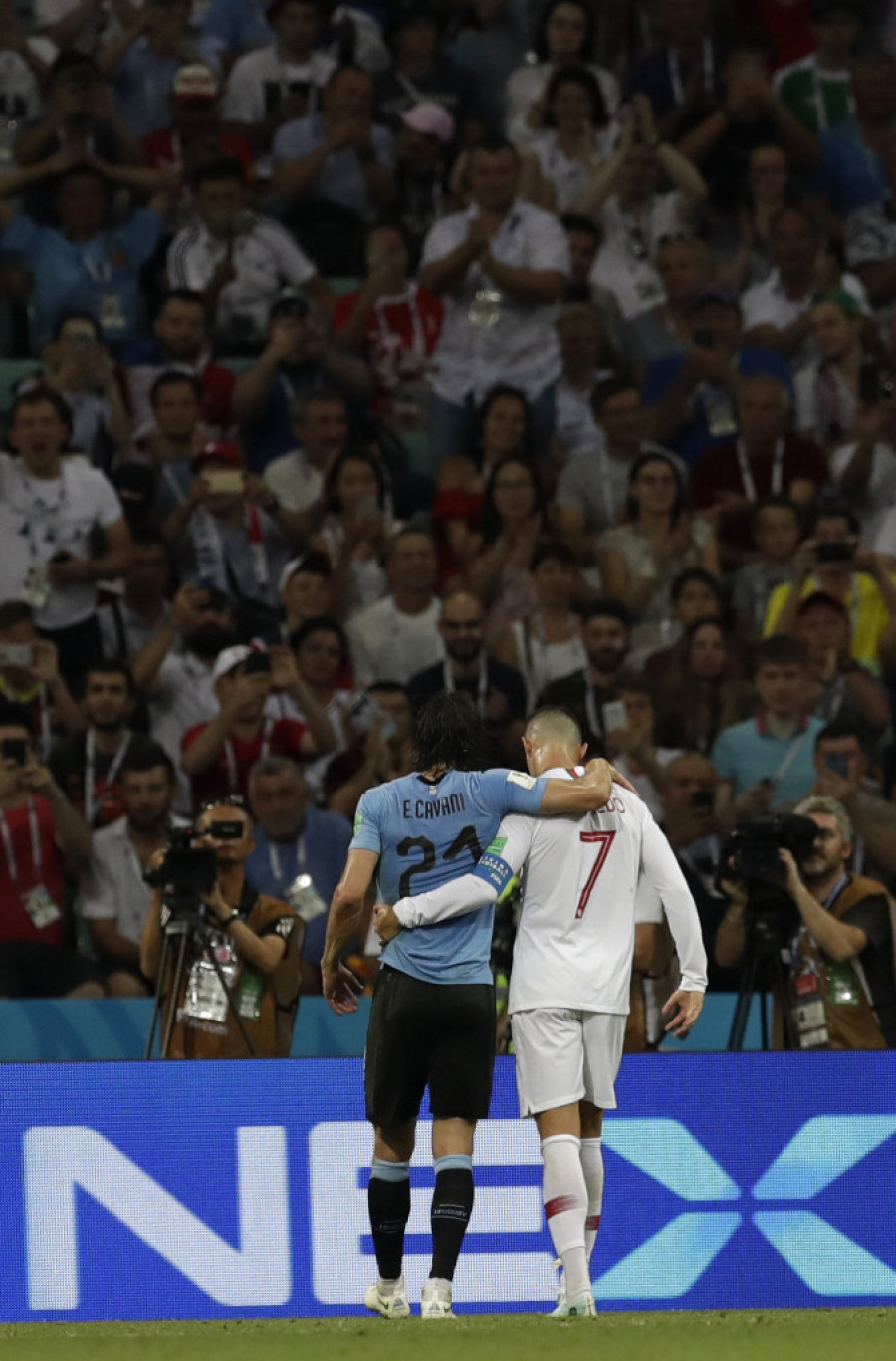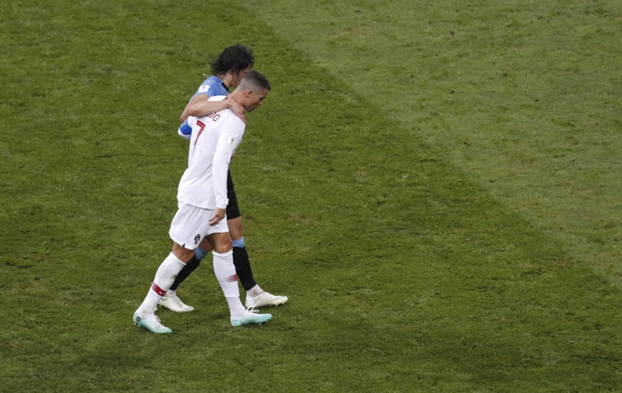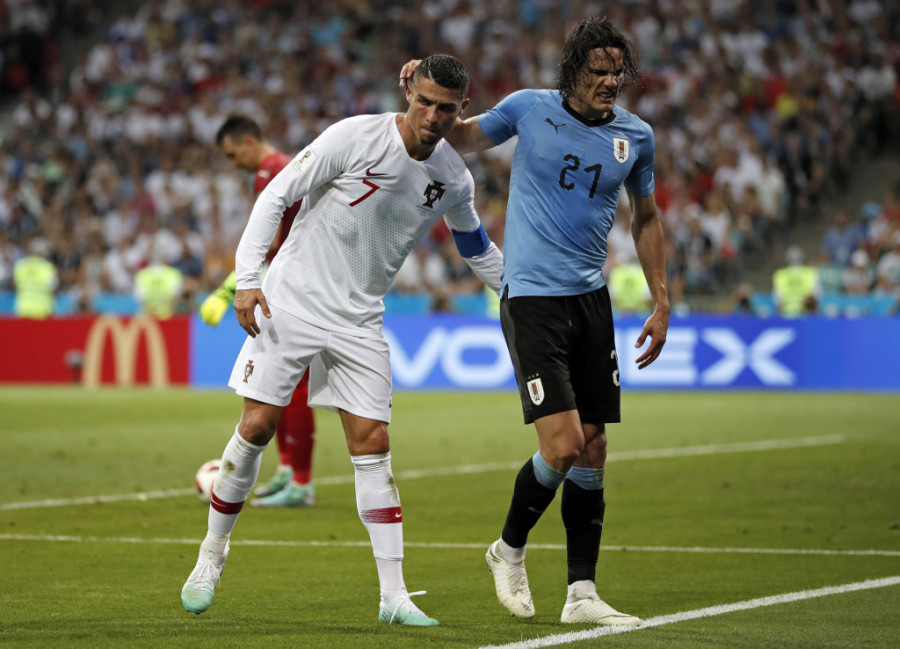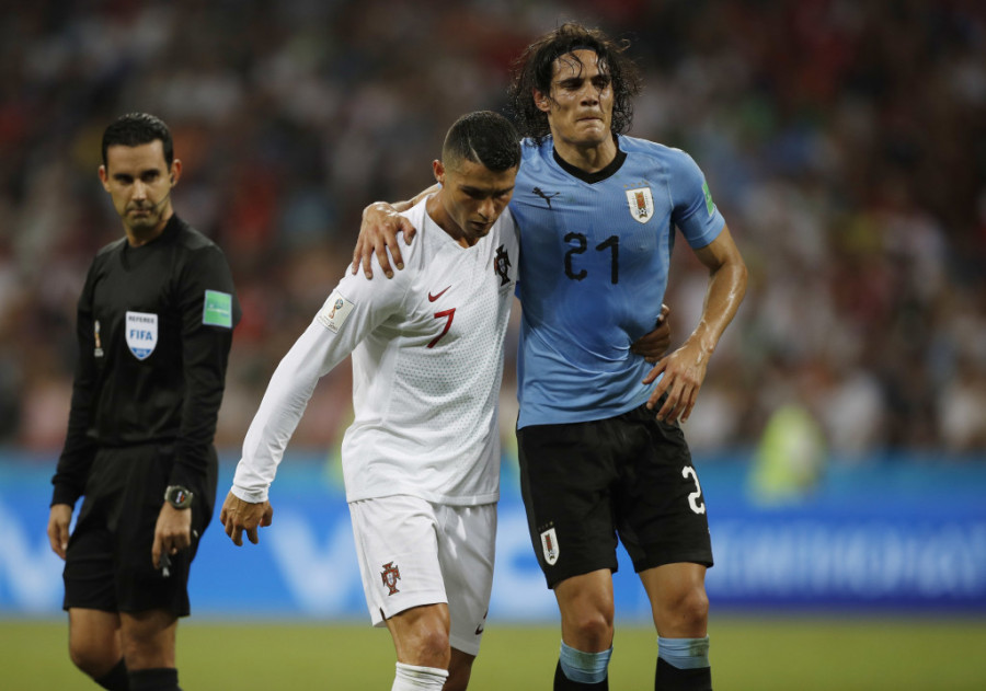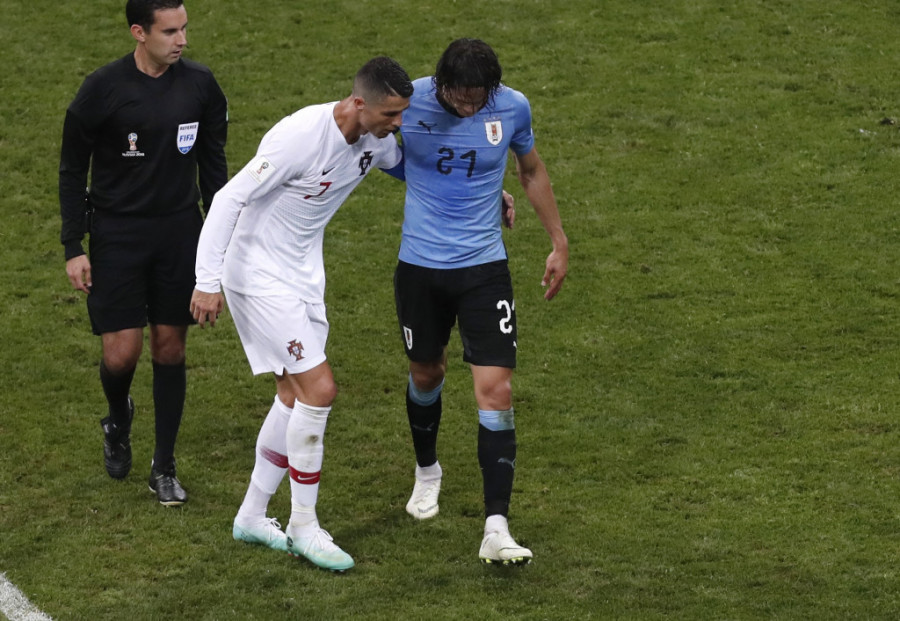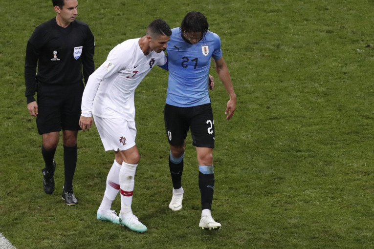 Foto: Tanjug/APRonaldo je u 74. minutu meča pomogao najboljem protivničkom igraču Edinsonu Kavaniju da napusti teren pošto se Urugvajac povredio.