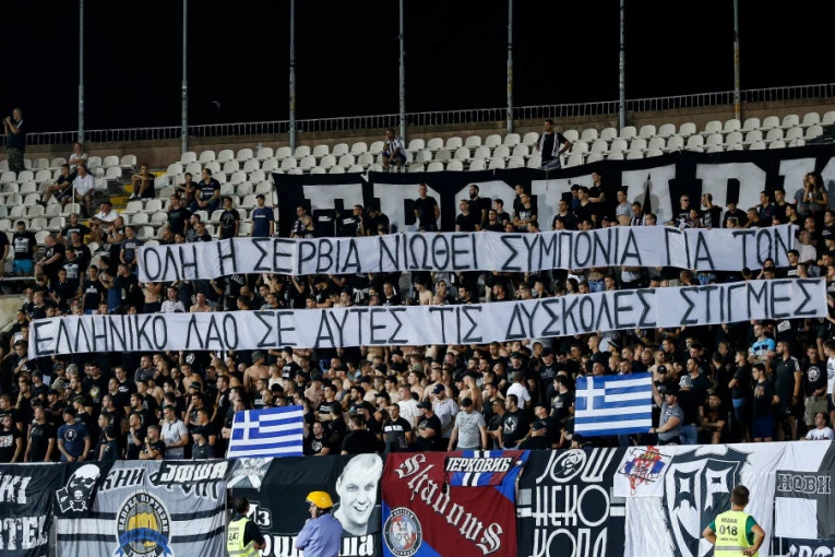 Prvo su navijači Crvene zvezde u utorak iskazale poštovanje grčkoj braći posle velike tragedije, a to su danas uradili i navijači Partizana. "Zabranjeni" su na istoku istakli transparent, dok su na jugu bile Grčke zastave.
