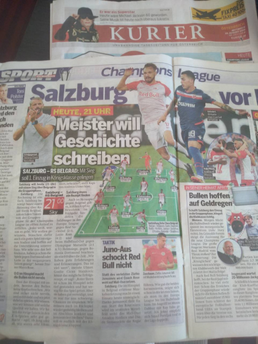 List Kurier u sklopu priče o večerašnjem meču daje zanimljivu statistiku po kojoj Red Bul nije izgubio u Salcburgu čak 45 utakmica u nizu u svim takmičenjima - Bundesliga, Kup Austrije, Liga šampiona (kvalifikacije) i Liga Evrope.