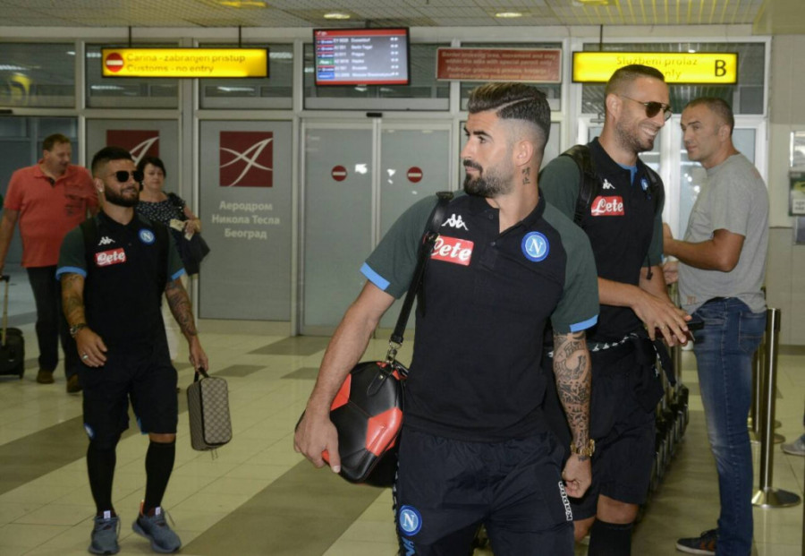 Fudbaleri Napolija stigli su u Beograd gde ih očekuje utakmica prvog kola Lige šampiona protiv Crvene zvezde. Predstavnici italijanskog kluba su protutnjali aerodromom "Nikola Tesla" a od Nikole Maksimovića smo saznali da ne smeju da daju izjave do konferencije za novinare. Utakmica je na programu u utorak od 21 sat.