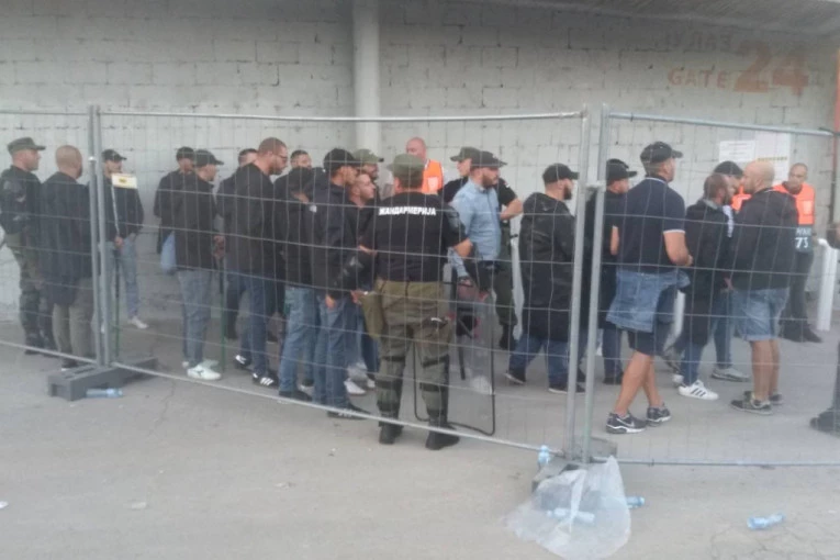 Njih 15 je bez obeležja kluba sprovedeno do tribine na kojoj će biti smešteni.