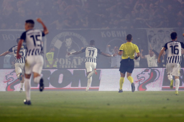Fudbaleri Partizana i Crvene zvezde igraju na stadionu u Humskoj 158. večiti derbi, u kom crno-beli golom Rikarda Gomeša vode 1:0. Koncentrisano i agresivno su domaći ušli u meč, a kako su u prvom minutu susreta imali šansu preko Jankovića, tako su izabranici Zorana Mirkovića na startu drugih 45 minuta zatresli okvir gola preko Danila Pantića. Milan Borjan je svojom paradom samo ulepšao ovaj udarac, ali je pitanje da li bi golman crveno-belih uspeo da odbrani da je lopta išla u gol.