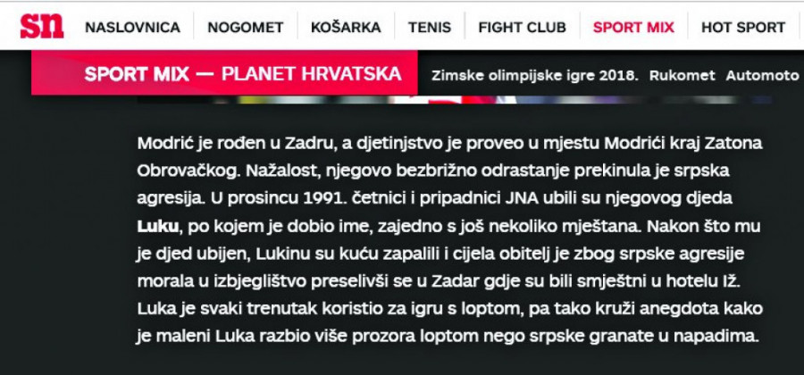 Foto: Printscreen/Jutarnjii listVečernji list ističe da je rodna kuća najboljeg fudbalera na svetu na planini Velebit i dan-danas okružena minama, podsećajući da je porušena od četničke ruke. Zanimljivo je da Hrvati uporno zaboravljaju da spomenu kako su Modriću baš ustaše pobile pola familije. Konkretno, najmanje tri člana porodice Lukine majke Radojke Dopuđ ubijeno za vreme Drugog svetskog rata u logorima Jasenovac i Stara Gradiška. Na spisku žrtava ta dva logora nalaze se: Anica, Božo i Simica Dopuđ. Iako su ti podaci javni i mogu se pronaći na internetu, u hrvatskim medijima nema ni slova o tome.