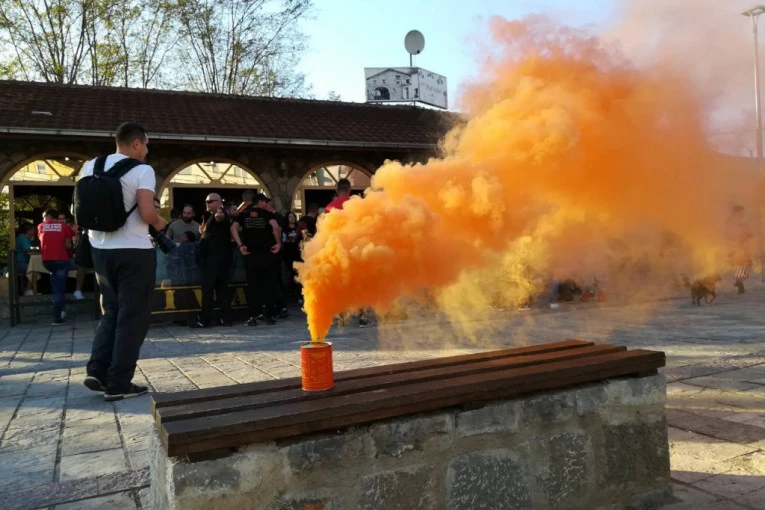 Foto: ST/ D.OSTOJIĆNekoliko sati pred meč domaći su bili više nego raspoloženi. Zagrevali su se za meč uz pivo i navijačke pesme.