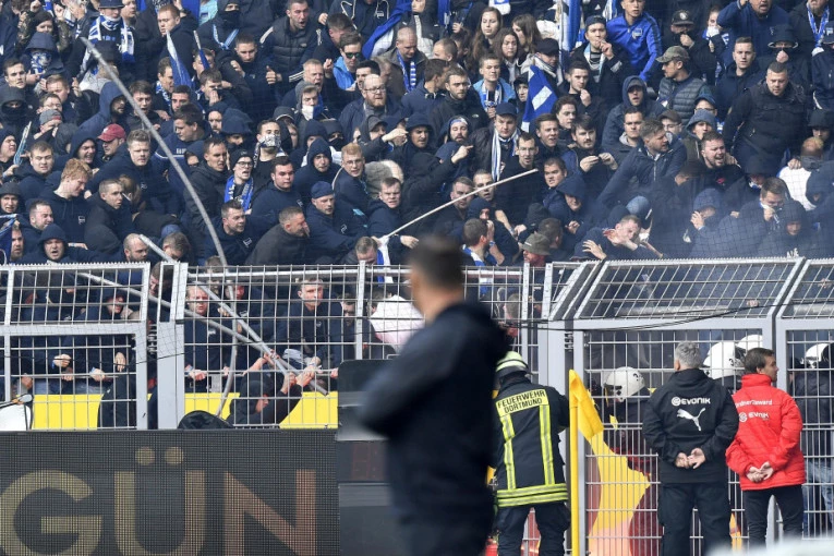 Tokom utakmice između Borusije i Herte došlo je do neviđenog haosa pošto je došlo do žestoke tuče navijača Herte i policije.