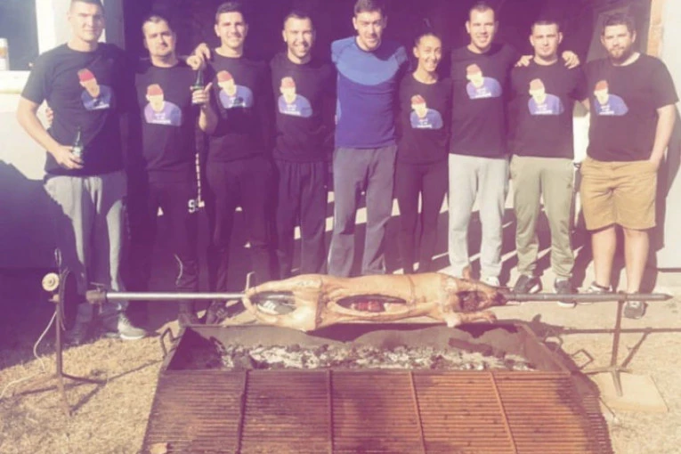 Foto: Privatna arhivaOdlični napadač u Begeču je sa drugarima proslavio istorijski trijumf i dva gola "Redsima" uz pečeno prase. Zar je moglo drugačije nego na pravi srpski način. Svi su u znak podrške prijatelju nosili majice sa likom fudbalera Crvene zvezde.