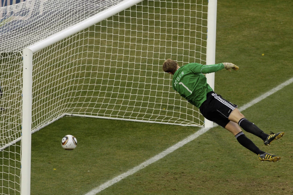 Pri rezultatu 2:1 za Nemačku, u 38. minutu meča između Nemačke i Engleske, Frenk Lampard uputio je fenomenalan udarac ka golu Nojera lopta se od prečke odbila barem pola metra iza linije, a zatim opet u prečku pa u polje i skoro svi na terenu, tribinama i pored malih ekrana su videli da je Lampard postigao gol.