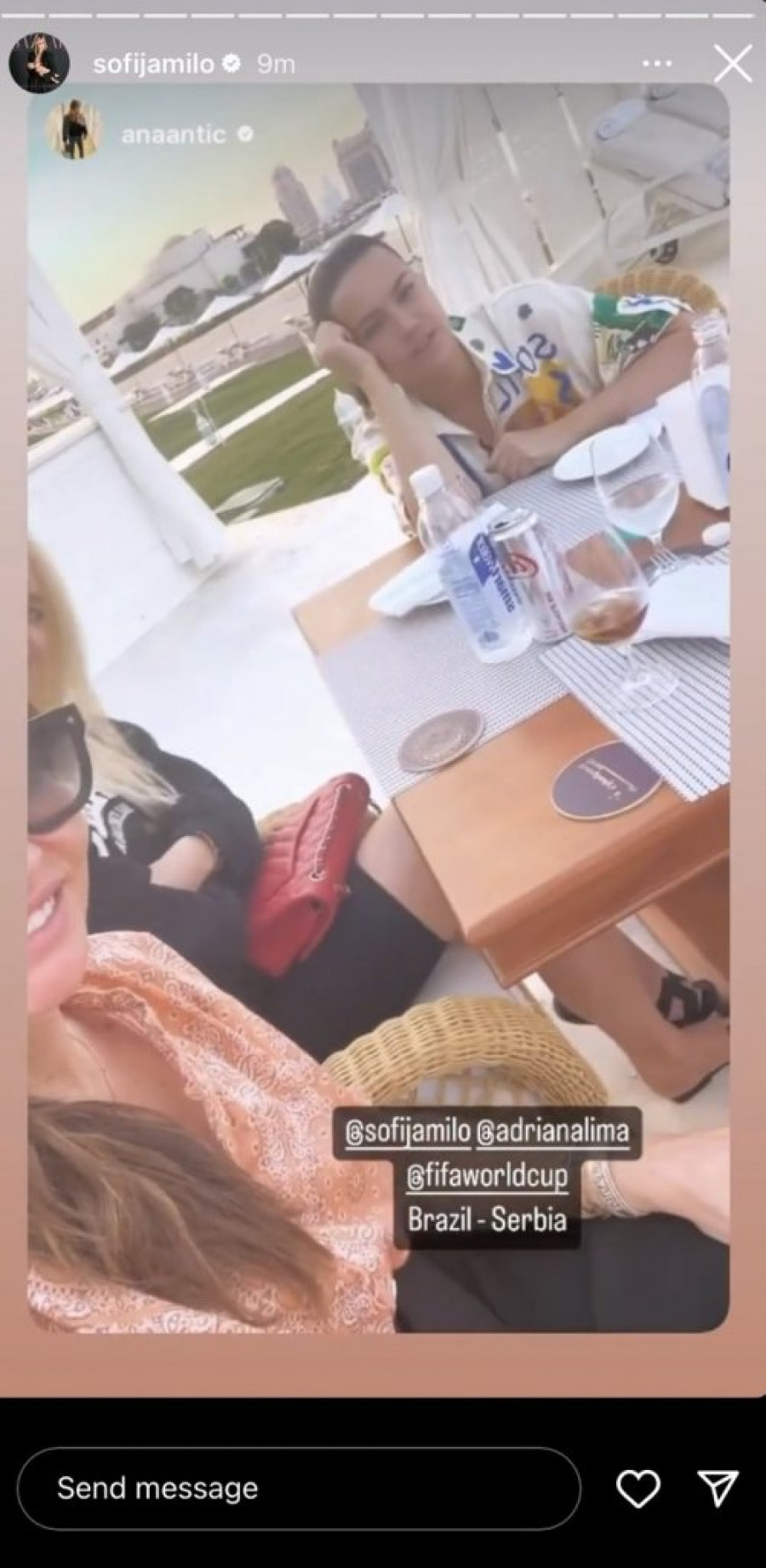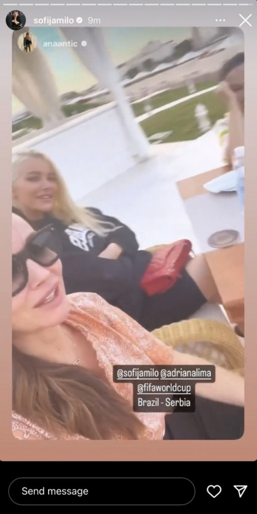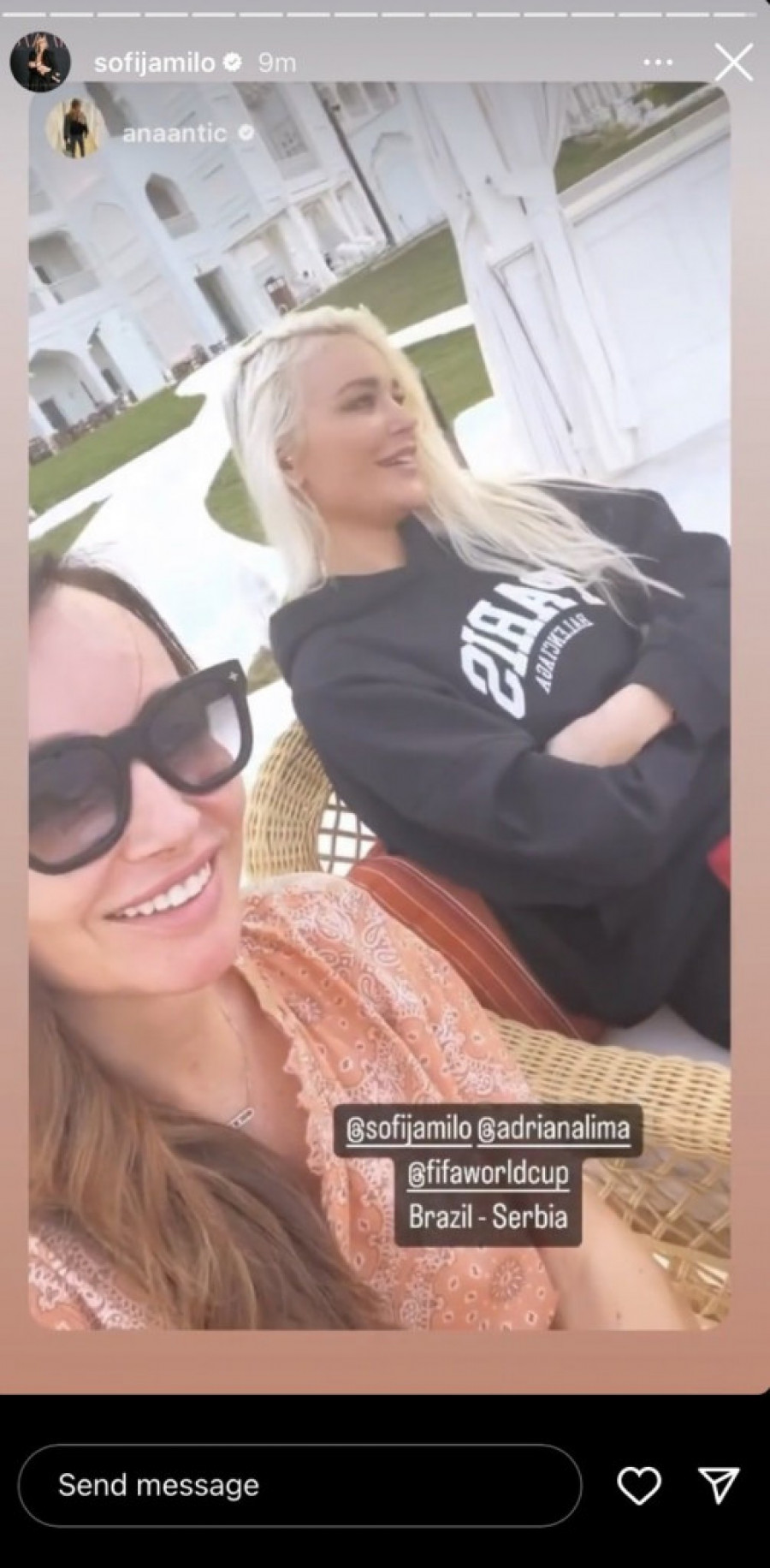 Na Instagramu se pojavio stori na kom izabranica fudbalera Fiorentine Luke Jovića, Sofija Milošević, pozira sa ćerkom legendarnog trenera Radomira Antića, Anom i bivšom suprugom Marka Jarića i jednom od najlepših žena planete, Adrianom Limom.