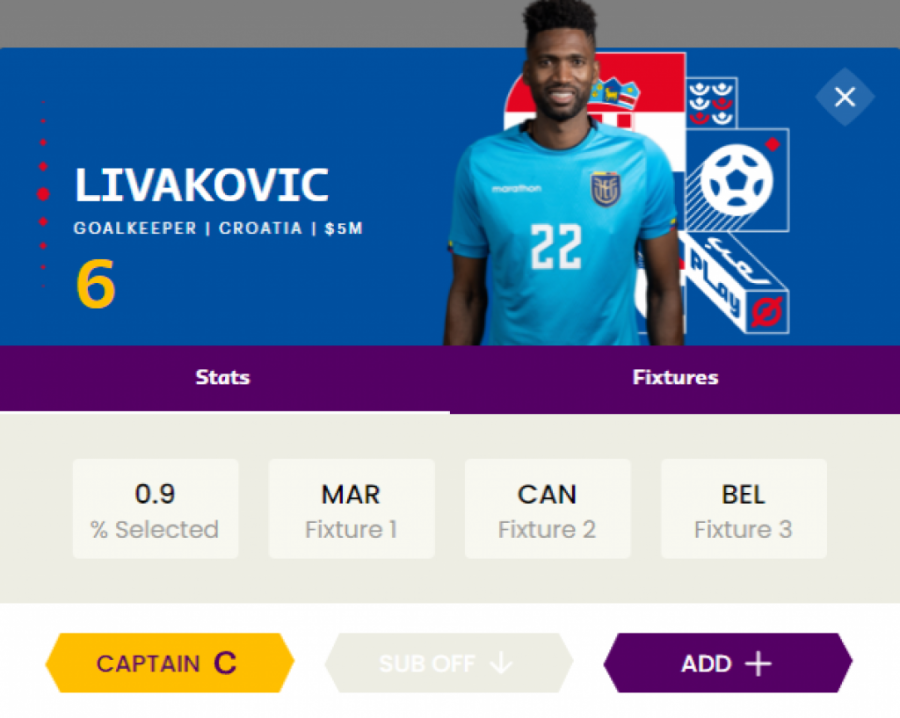 FIFA je uspela da napravi previd, koji se tiče jednog hrvatskog fudbalera. Naime, čuvar mreže Vatrenih Dominik Livaković nema svoju sliku, već je kraj njegovog imena fotografija rezervnog golmana Ekvadora Aleksandra Domingeza.