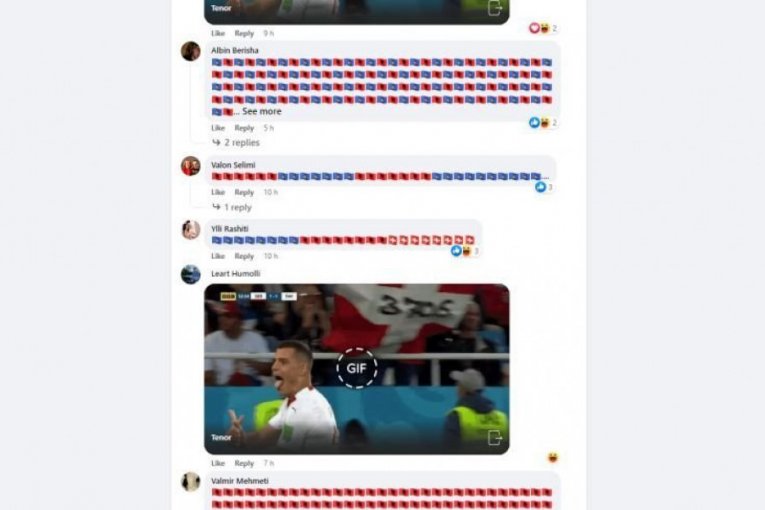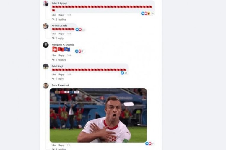 Sa tzv. Kosova su objavljivali kosovske, albanske i švajcarske zastave, uz brojne uvrede. Postalvjali su i fotografije Džake i Šaćirija, kao i video snimke njihovog slavlja.