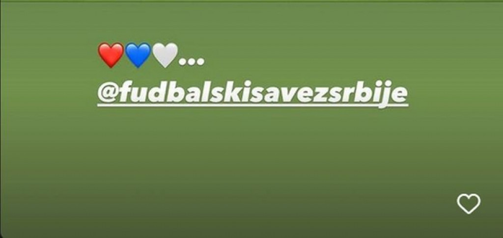 Vlahović je u Instagram storiju objavio sliku naših reprezentativaca, dok je ispod ostavio tri emotikona u obliku srca u bojama naše zastave uz tri tačke.