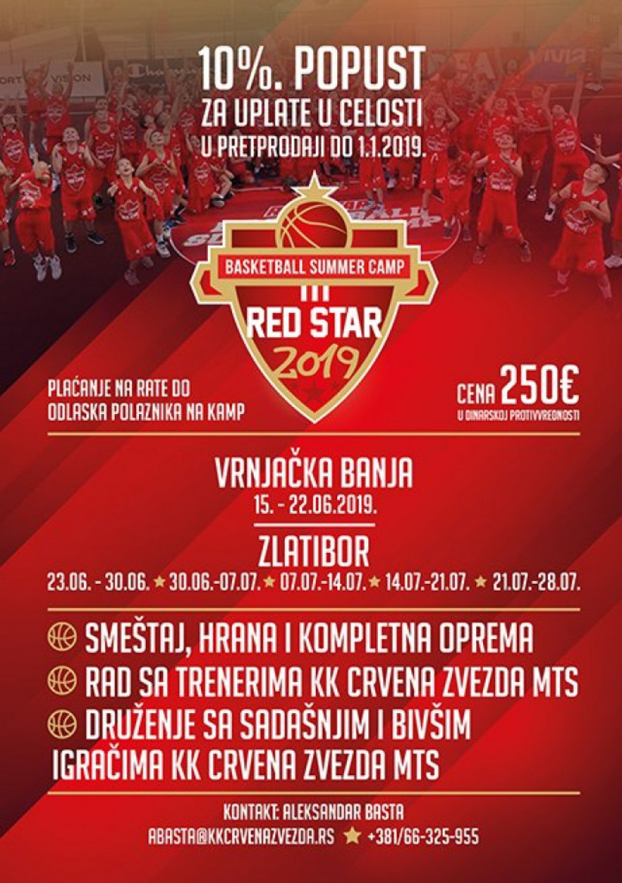 KK Crvena zvezda mts i naredne godine organizuje Letnji košarkaški kamp koji će se održati u čak šest smena na dobro poznatim lokacijama – Vrnjačka Banja i Zlatibor.