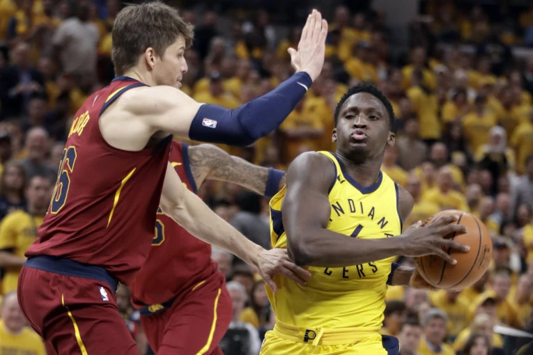 Foto: Tanjug/APOn nije bio spreman za dodavanje Viktora Oladipa. Igrač Pejsersa je krenuo u napad ali je izgubio orjentaciju. Nije znao gde su njegovi saigrači, pa je pas poslao sudiji.
