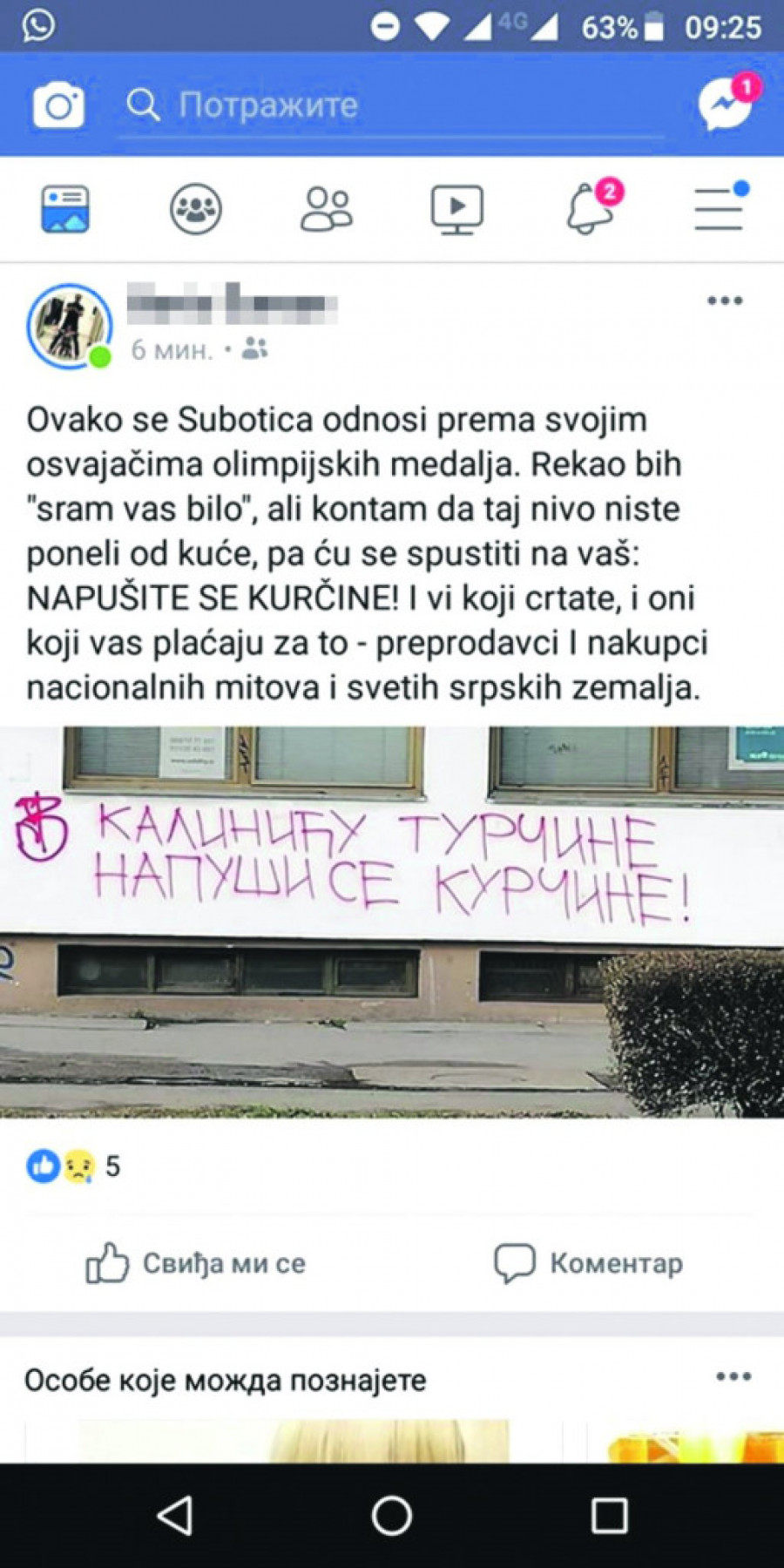 Foto: instagram.com/nikola_kalinaNeki su čak otišli korak dalje, pa su na najgrublji način izvređali srpskog reprezentativca. Naime, u Nikolinoj rodnoj Subotici osvanuo je grafit na kojem piše: "Nikola Turčine, napuši se ku*čine". Sramno! Čini se da je autor ovog skandaloznog grafita vrlo brzo zaboravio sve medalje i radosti koje je Nikola doneo ovoj zemlji.