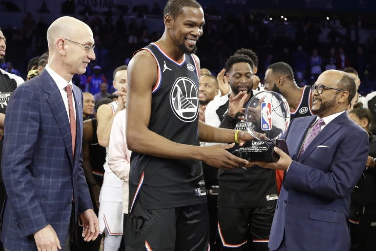Foto: Tanjug/APKošarkaš Golden Stejta Kevin Durent je Ol-star meč završio sa 31 poenom, sedam skokova i šutem iz igre 10/15. Pogodio je šest trojki iz devet šuteva. Durent je posle meča prokomentarisao preokret svoje ekipe koja je gubila od Janisovog tima 20 razlike u trećoj četvrtini.