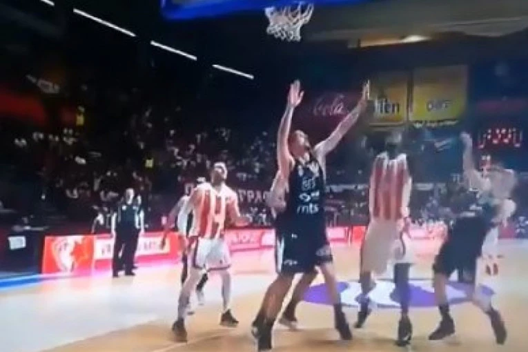 Foto: Facebook.com/Dnevna doza prosečnog zvjezdašaU jednom trenutku se centar Zvezde Majkl Odžo, našao među košarkašima Partizana, pokušao je da izgradi poziciju, dosuđen mu je faul u napadu pošto se "razmahao" a košarkaš Partizana, Vanja Marinković postupio je poput fudbalera i dodatno iscenirao faul.