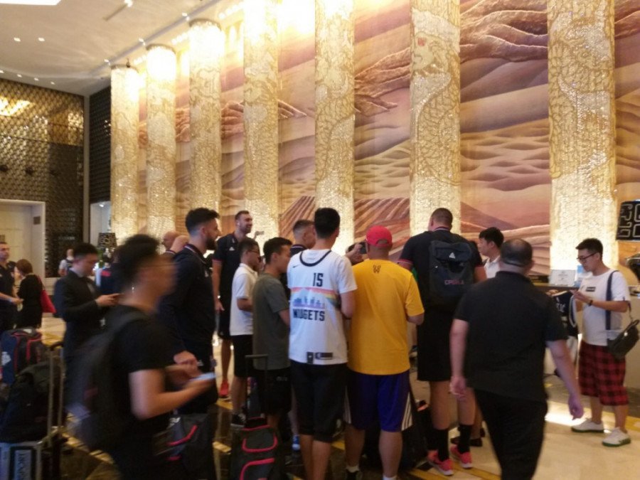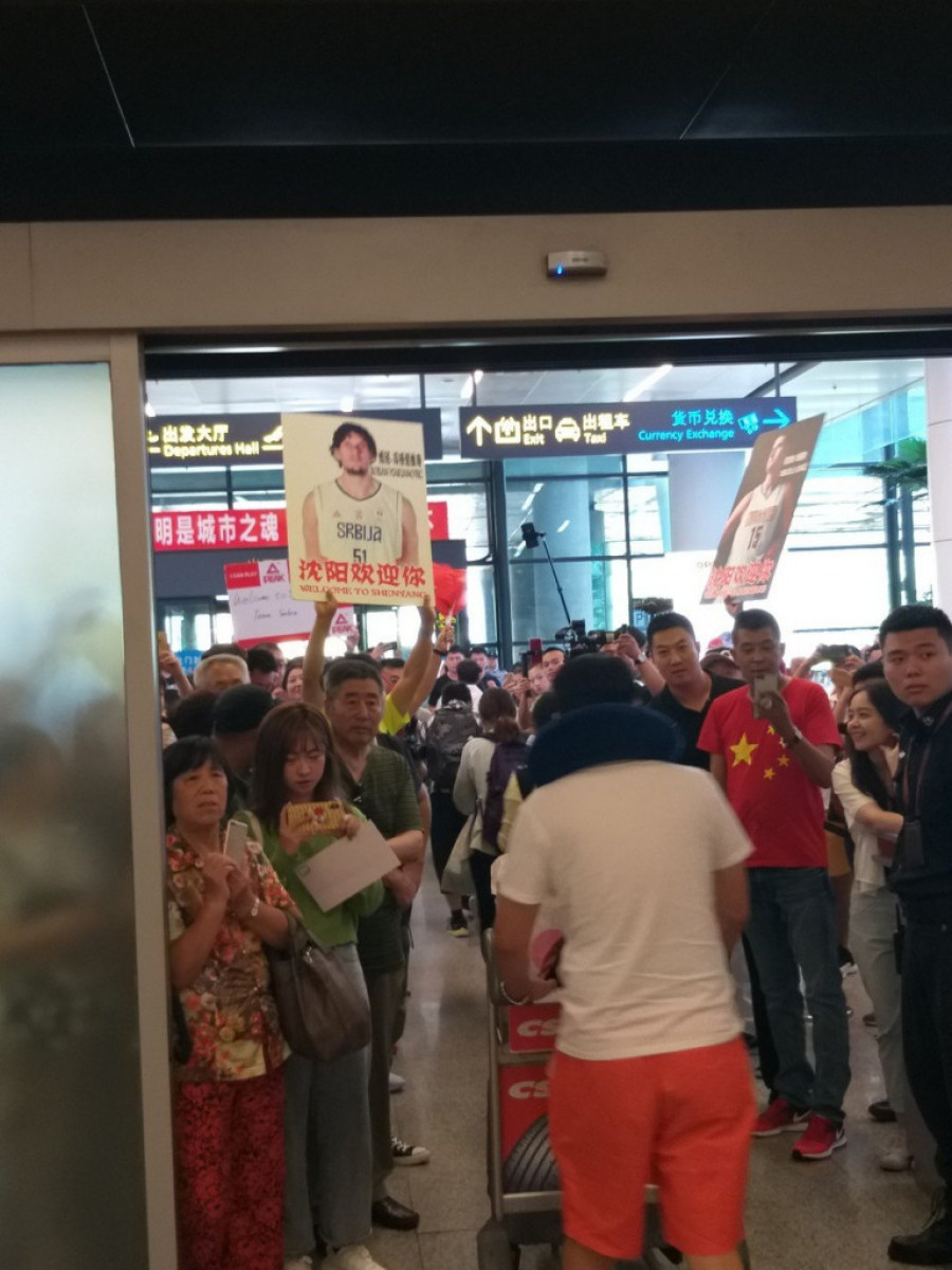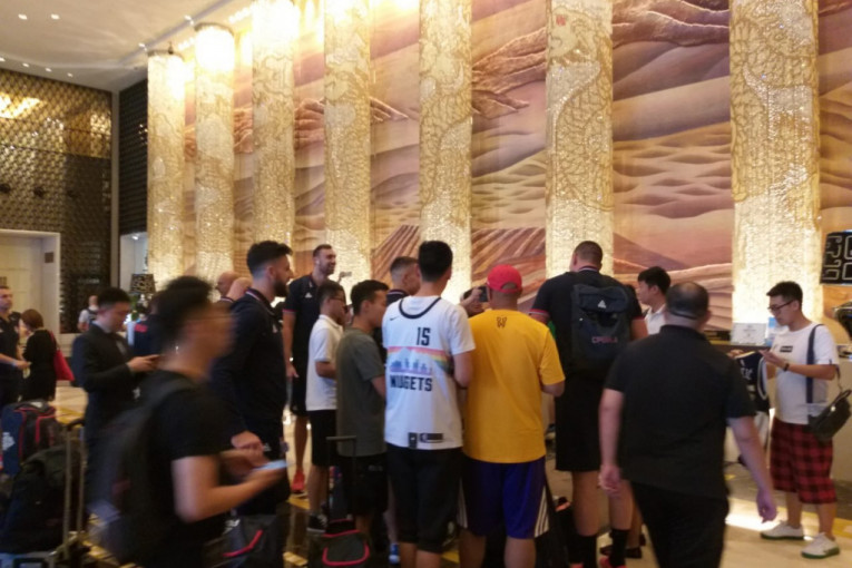 Foto: Kss.rsNaime, odmah po sletanju i završetku pasoške kontrole, naše košarkaške dočekali su navijači iz Šenjanga sa transparentima i slikama igrača, očigledno veliki ljubitelji NBA lige i naših centara Bobana Marjanovića i Nikole Jokića. Ljubazni Kinezi su strpljivo čekali da se fotografišu i da im se naši asovi potpišu na dres ill majicu, a ista stvar se ponovila i po dolasku u hotel "Vanda vista", gde je smešten naš nacionalni tim.