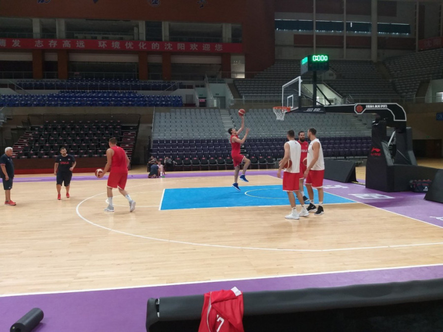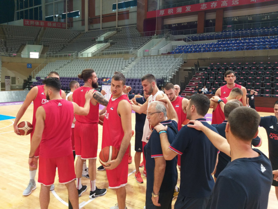 Posle odmora po dolasku u hotel, selektor Aleksandar Đorđević je održao i prvi trening u Šenjangu, i to u dvorani Lioaning Gimnazijum, gde će igrati dve od tri utakmice turnira.