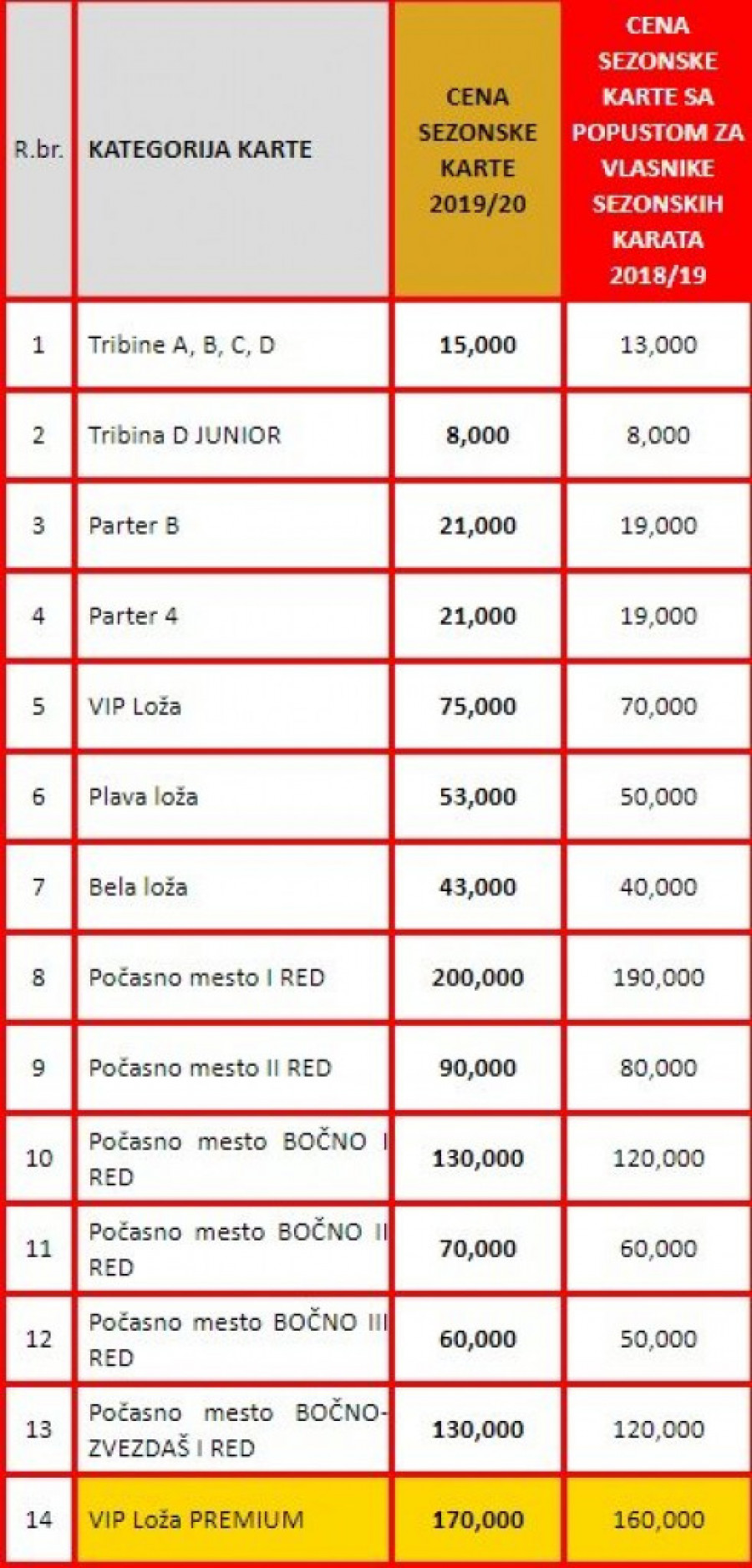 CENE SEZONSKIH KARATA 2019/20 U PRODAJI ZA SVE DOMAĆE UTAKMICE