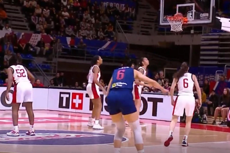 8. minut - Bruks promašuje za 3... Sjajna odbrana naših košarkašica, a potom sjajna rola Sonje Petrović!
