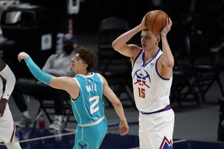 Foto: Tanjug/APJokić je stigao do novog tripl-dabla na utakmici protiv Šarlota, a pored toga pamtiće se i njegova dva zakucavanja sa ovog susreta.