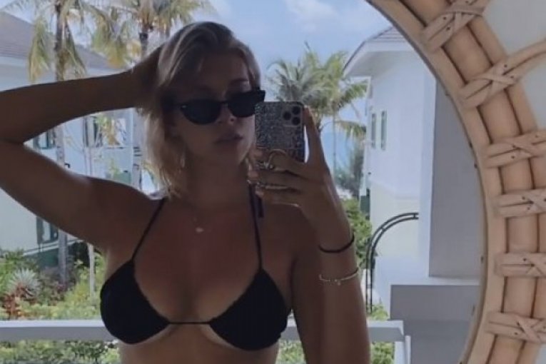 Crni bikini joj savršeno stoji i ističe obline koje mame muške poglede.