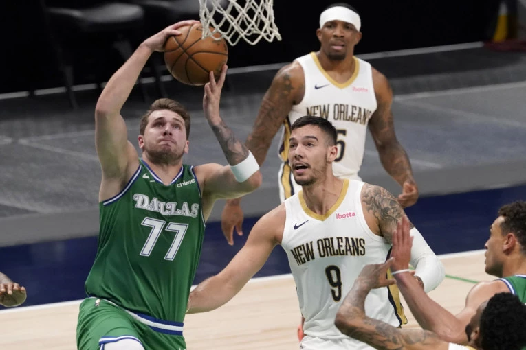 Foto: Tanjug/APDalas Maveriksi su na svom terenu savladali Nju Orleans Pelikanse, a slovenački košarkaš je meč završio sa 33 poena i po osam skokova i asistencija.